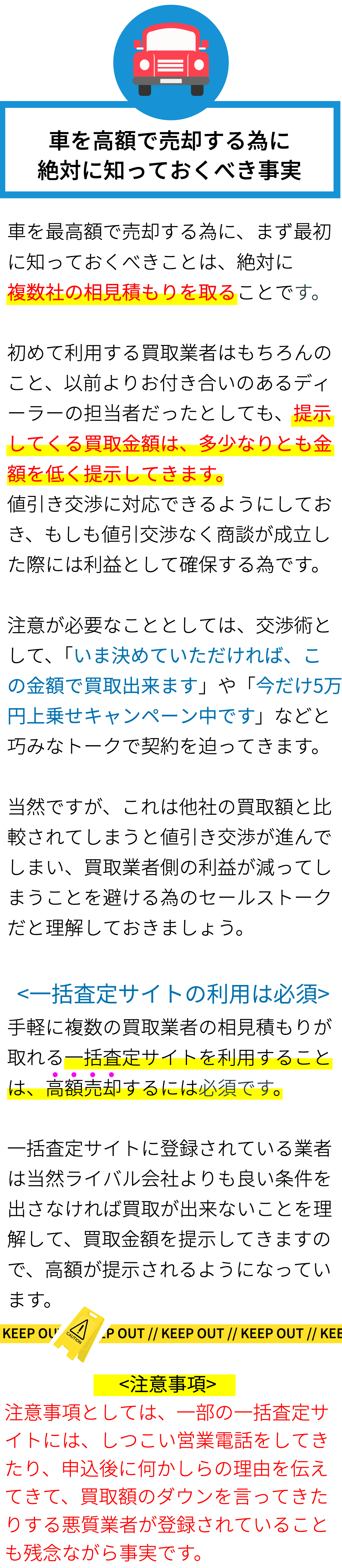 車買取一括査定は、複数の買取業者から一度に査定額の見積もりを受け取ることができるサービスです。各社が独自の査定基準に基づいて提示する金額を比較することで、利用者は自分の車に最適な取引先を選ぶ手助けとなります。これまで個別に査定依頼を行う必要があった手間が一括査定により大幅に軽減され、インターネットを通じた申し込みにより迅速に査定結果を入手することができます。取引の透明性やスムーズな連絡体制が整えられている点も、このサービスの大きな特徴です。利用者は自宅にいながらにして複数社の査定結果を比較できるため、忙しい日常の中でも効率的に売却活動を進めることができるメリットがあります。各業者の査定結果が提示されると、利用者は自分の車の状態や市場の状況を踏まえ、最も有利な条件での売却を実現するための情報を得ることが可能となります。